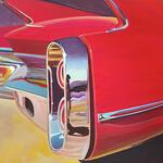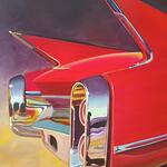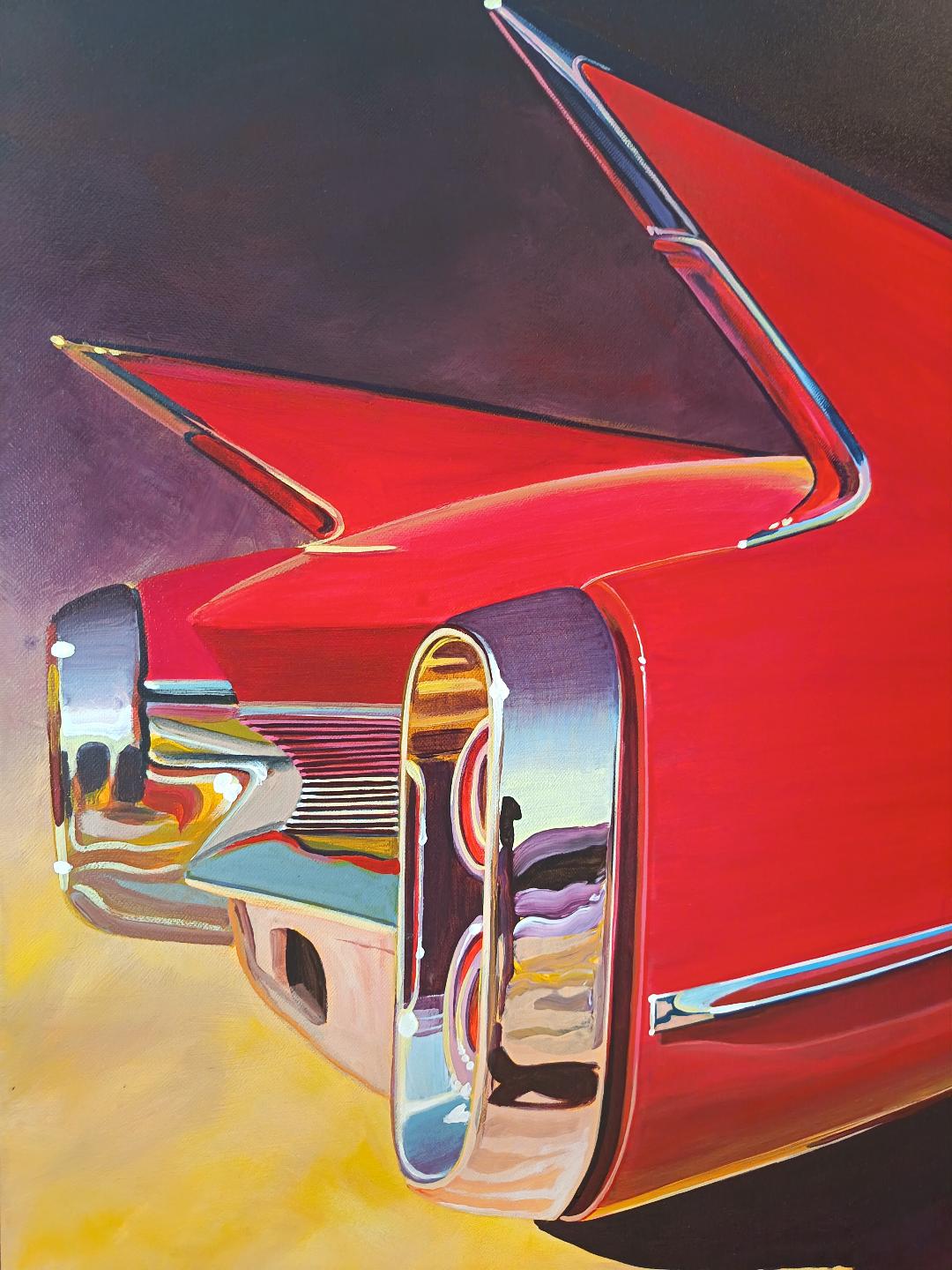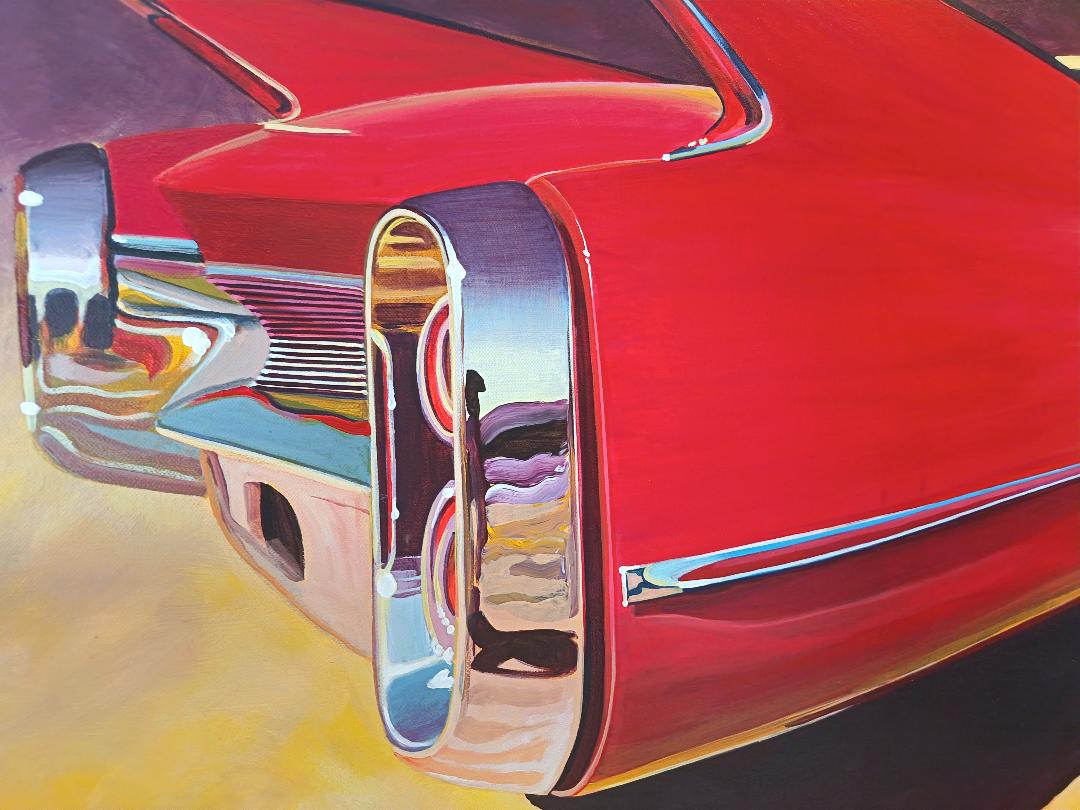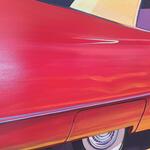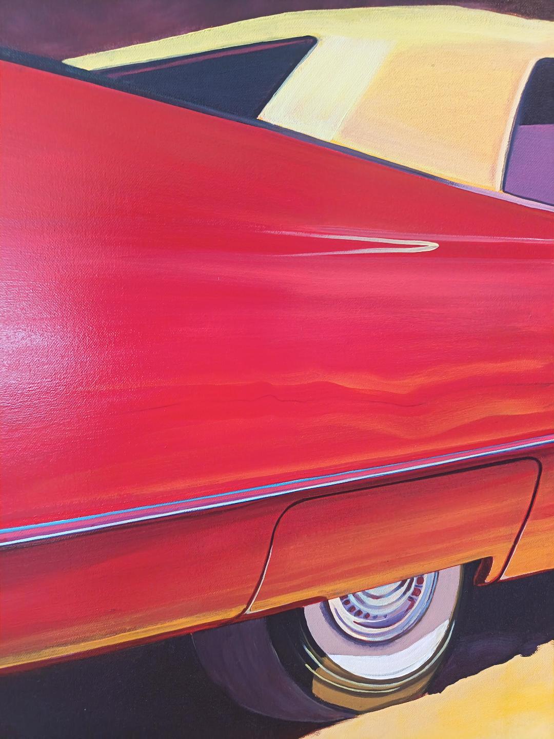 La Cadillac Rouge – Voiture vintage américaine, peinture contemporaine figurative